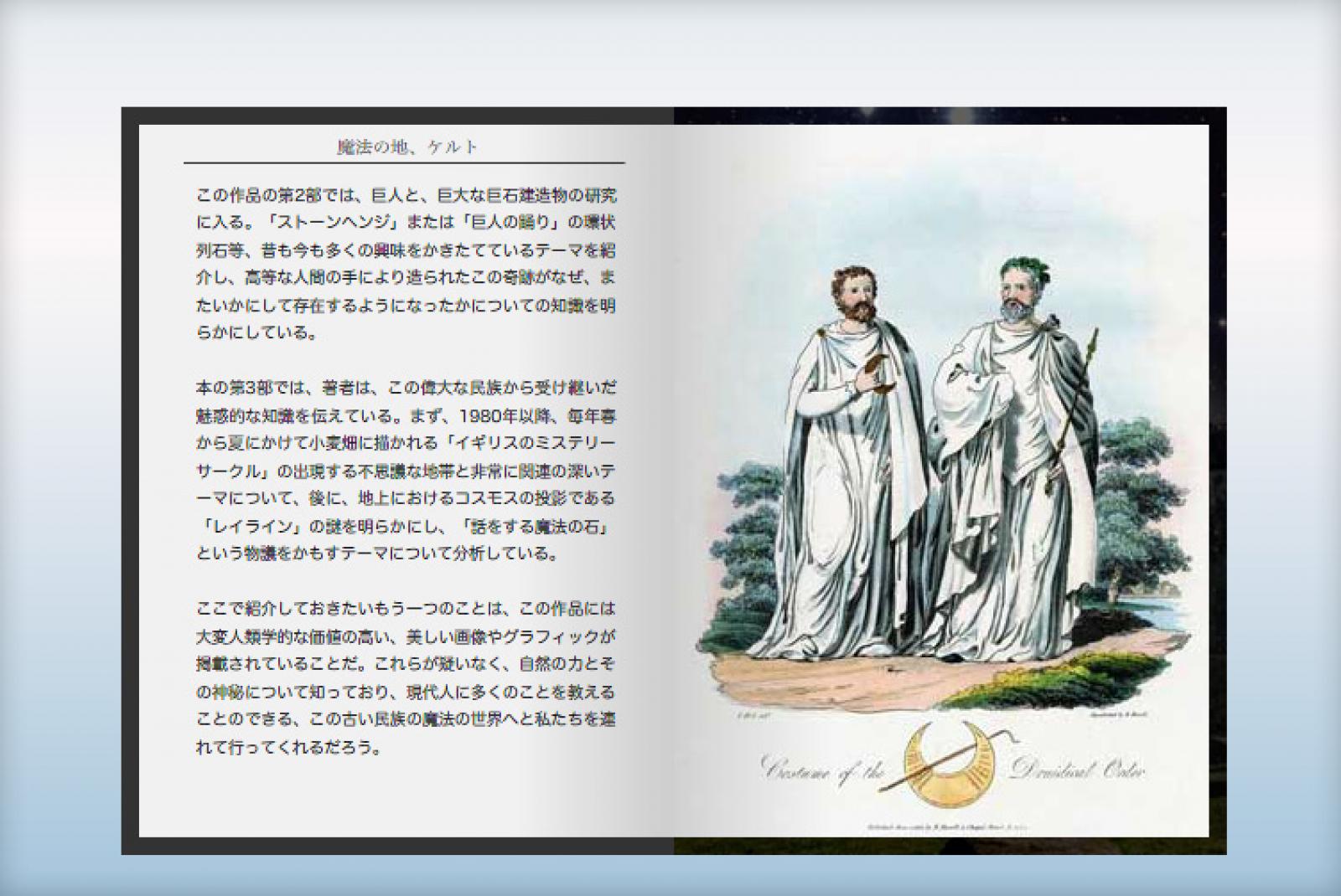 「魔法と自然を真に愛し、これを完璧に知っていたドルイド達は、鉱物、植物、動物界に対し、あらゆる種類の驚異を行っていた。彼らは、石のパワーを発見した。森や湖、川は、神が存在する場所であった。」